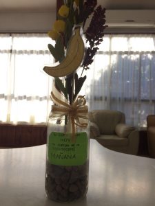 Muy comprometidas, las voluntarias Andrea, Valentina, Camila, Ximena y Paula, además compartieron e hicieron actividades participativas con los residentes, tales como decorar los individuales de forma personalizada o confeccionar centros de mesa con mensajes motivadores; todo lo cual aportó belleza y encanto al recinto.