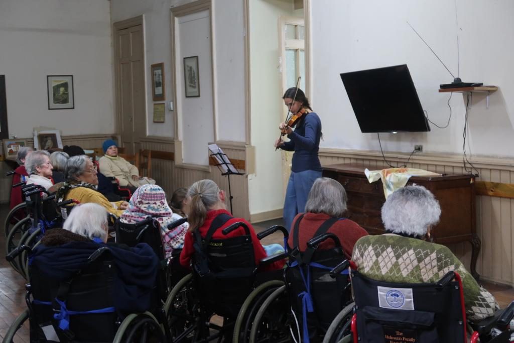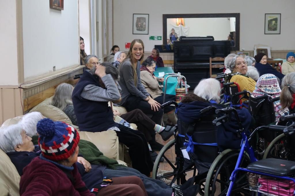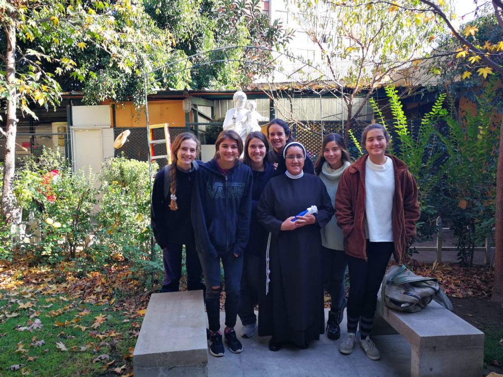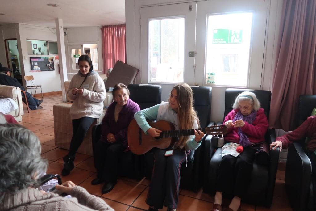 Las jóvenes de Enseñanza Media pudieron compartir desde primeras horas del día con los adultos mayores, acompañarlos en sus traslados, conversar con ellos, ayudarlos en su alimentación y colaborar en distintas tareas cotidianas. De esta forma, sintieron en carne propia tres máximas que iluminan el quehacer en los hogares: compañía, afecto y experiencia de Dios.