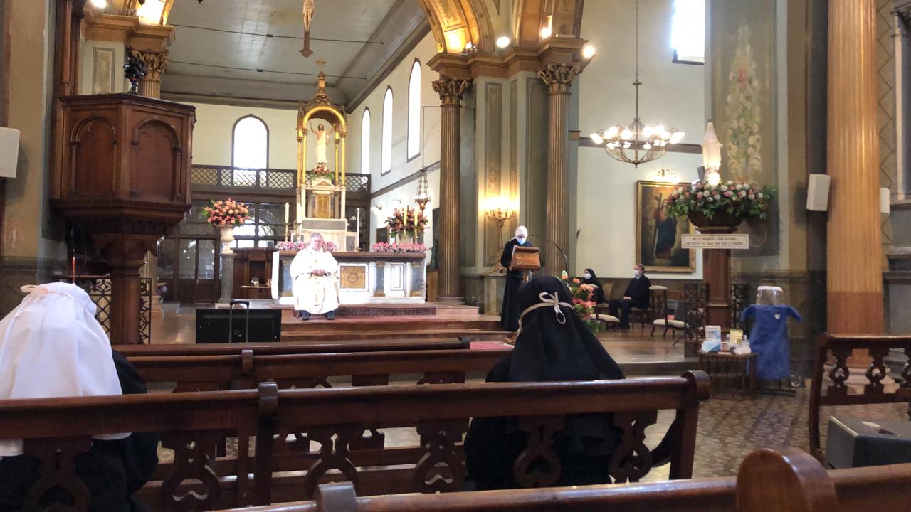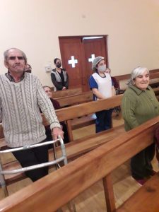 Durante la Misa, se realizó un sentido homenaje a todos aquellos residentes que en este tiempo de crisis sanitaria han partido a la Casa de Padre, ubicando sus fotografías en los asientos del templo «Aquí se vive y se muere en compañía, no en soledad; en los buenos cuidados no en el abandono; en la presencia del Señor, en la confianza del Señor que ha resucitado, y nos lleva a la Casa Paterna», afirmó el Padre Andrés.También se destacó la presencia remota de diversos Hogares, a través de las lecturas, ofrendas y peticiones. Especial participación tuvo el coro de funcionarias del Hogar Padre Pío, en Valdivia, que emocionó profundamente con sus interpretaciones, a todos quienes seguían la ceremonia en directo.