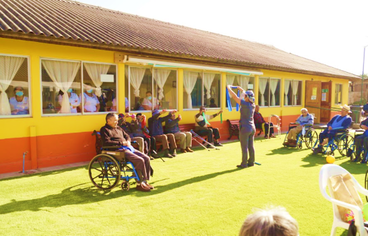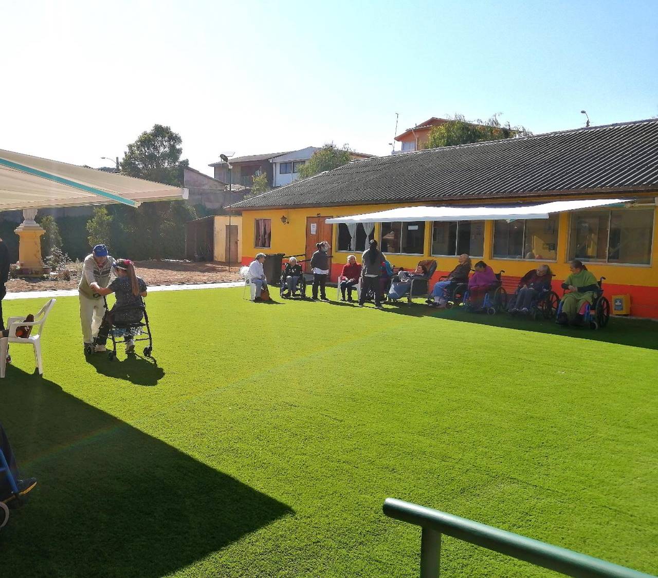 Fue así como gracias al equipo del Hogar se realizaron colectas en diversas parroquias de la región, donde lograron obtener los fondos ($20 millones) para construir un “Patio Terapéutico”. Esta área completamente renovada permite tener un espacio amplio, abierto y seguro para la realización de actividades terapéuticas comandadas por Kinesióloga y Terapeuta Ocupacional, acompañado de estimulación visual (Colores), tacto (Pasto) y música, además de contar con un sector que garantiza la evacuación segura del personal y residentes en caso de urgencia y mejorar el acceso de camillas de ambulancia hacia los pasillos, frente a urgencias clínicas.