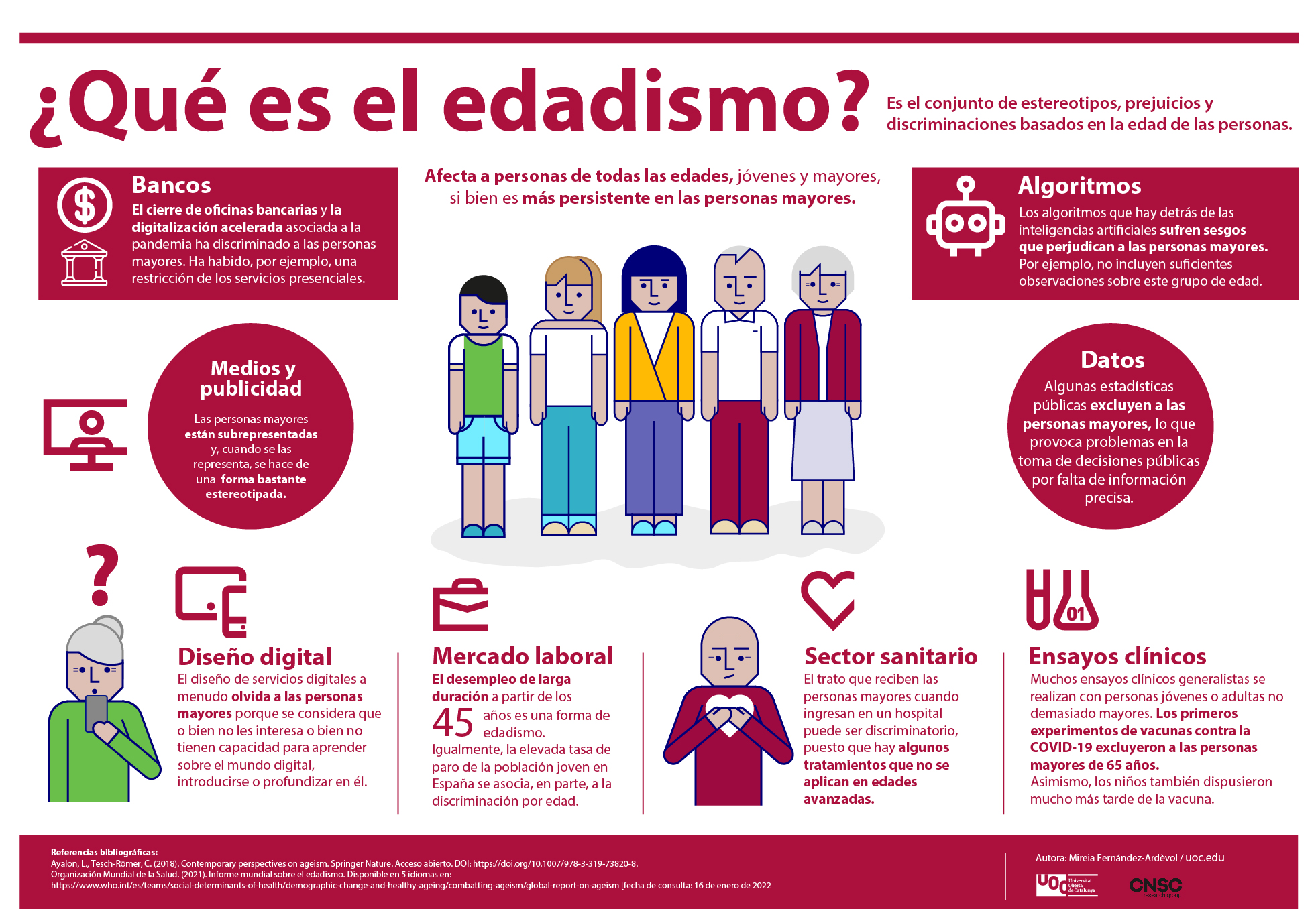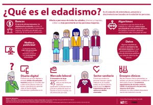 El Edadismo es un problema mundial. La OMS la define como «la discriminación que abarca estereotipos contra grupos de personas debido a su edad. Puede tomar muchas formas, como actitudes prejuiciosas, prácticas discriminatorias o políticas y prácticas institucionales que perpetúan estas creencias»