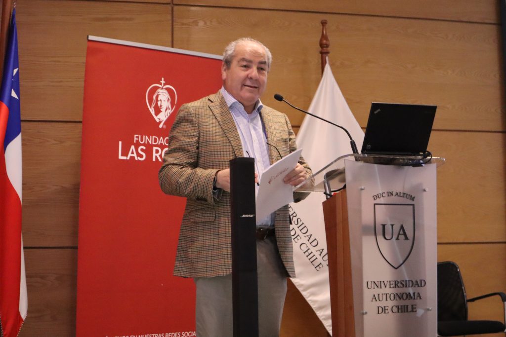 Un atento auditorio, integrado por estudiantes y académicos de las carreras de Salud de la Universidad Autónoma, pudo conocer sobre el trabajo de servicio que realiza Fundación Las Rosas desde hace 56 años. En su exposición, el Gerente General de la institución benéfica, Edgardo Fuenzalida, hizo un repaso a los principales indicadores de atención y salud en los Hogares FLR.