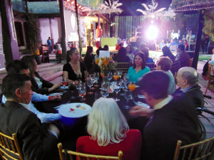 Empresarios, comerciantes, autoridades políticas y colaboradores, se dieron cita el miércoles 25 de octubre en los patios de la Viña Casa Donoso de Talca, quienes con una adhesión personal o por mesa, cenaron en una cálida noche llena de sorpresas, música, danza flamenca, remates de donaciones, reconocimientos a empresas colaboradoras y el doble oficial de Sandro, quien hizo bailar a todos con sus canciones, en un ambiente en donde la solidaridad estaba a flor de piel y que contó con la grata animación de la querida conductora Carolina Herrera, de Radio Paloma de Talca.