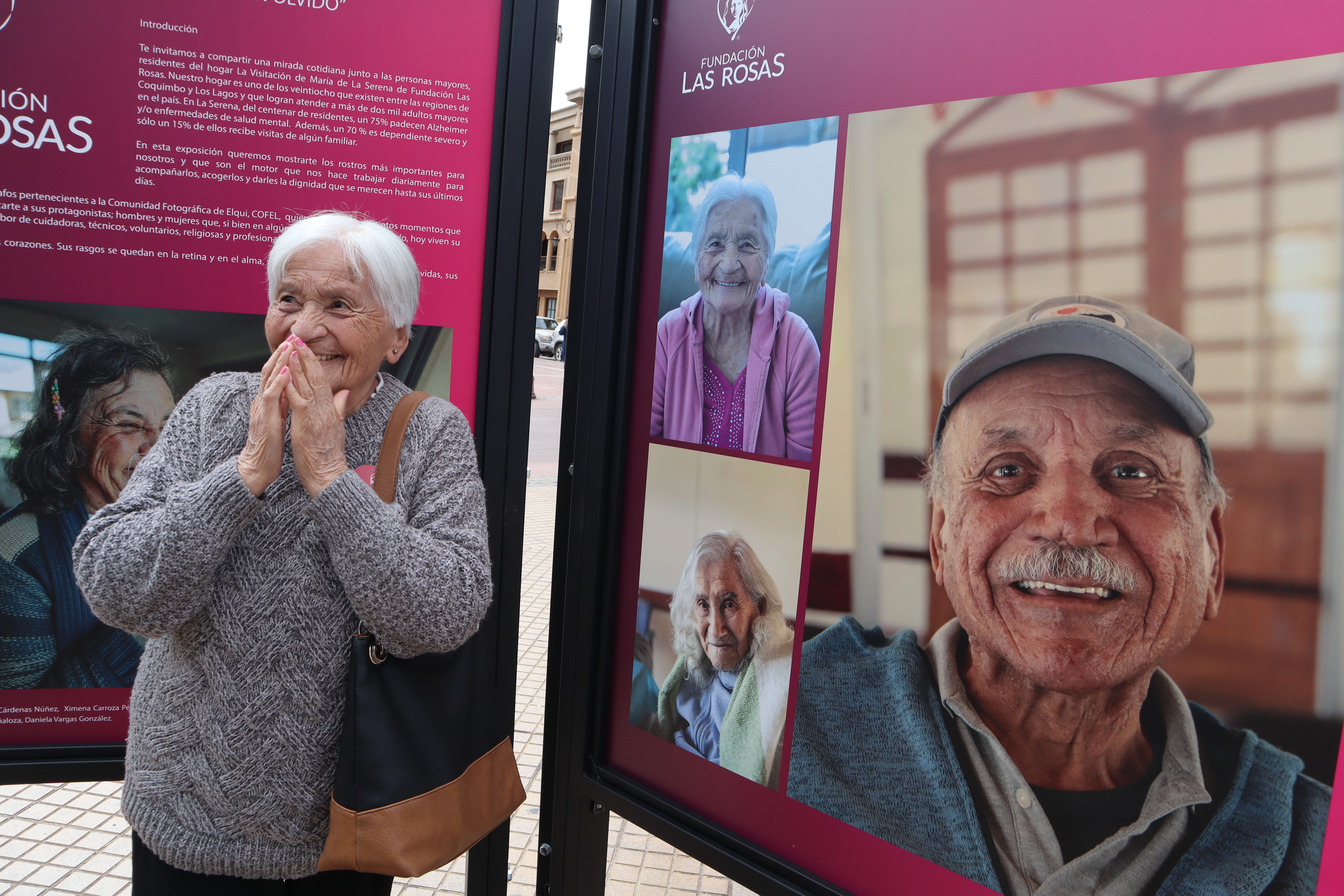 Las fotografías en gran tamaño fueron tomadas por artistas locales pertenecientes a la Comunidad Fotográfica de Elqui -COFEL- y quedarán instaladas en la vía pública durante dos semanas. “Aquí están los rostros que dan vida a nuestra misión solidaria.. don José, Jorge, doña Isabel y tantos otros que día a día participan de actividades terapéuticas y recreativas retratadas en estas hermosas fotos”, añade la vocera de la Fundación.